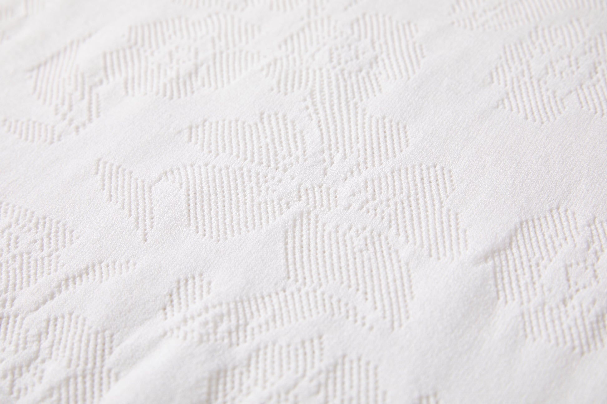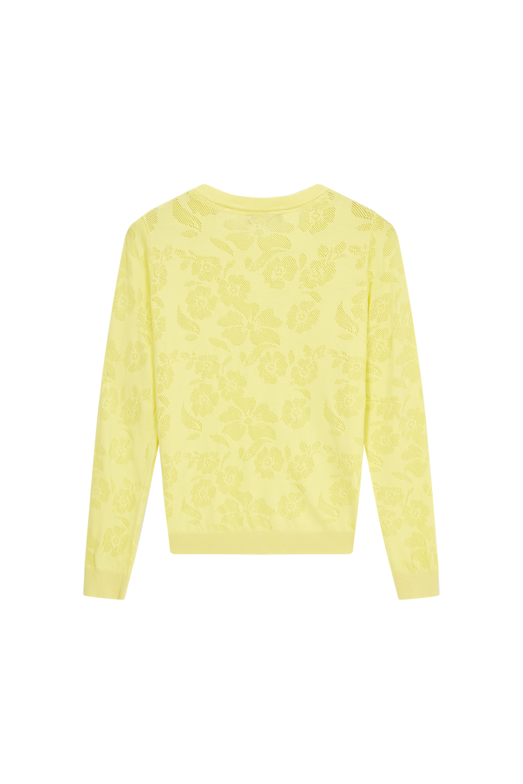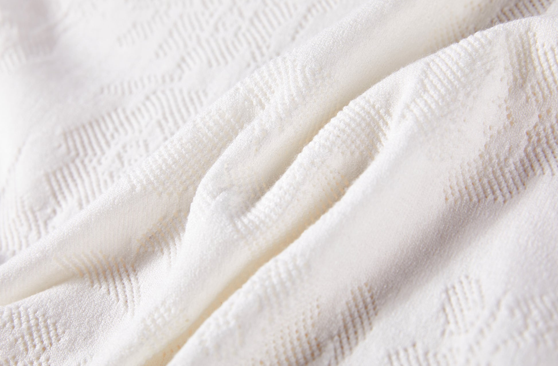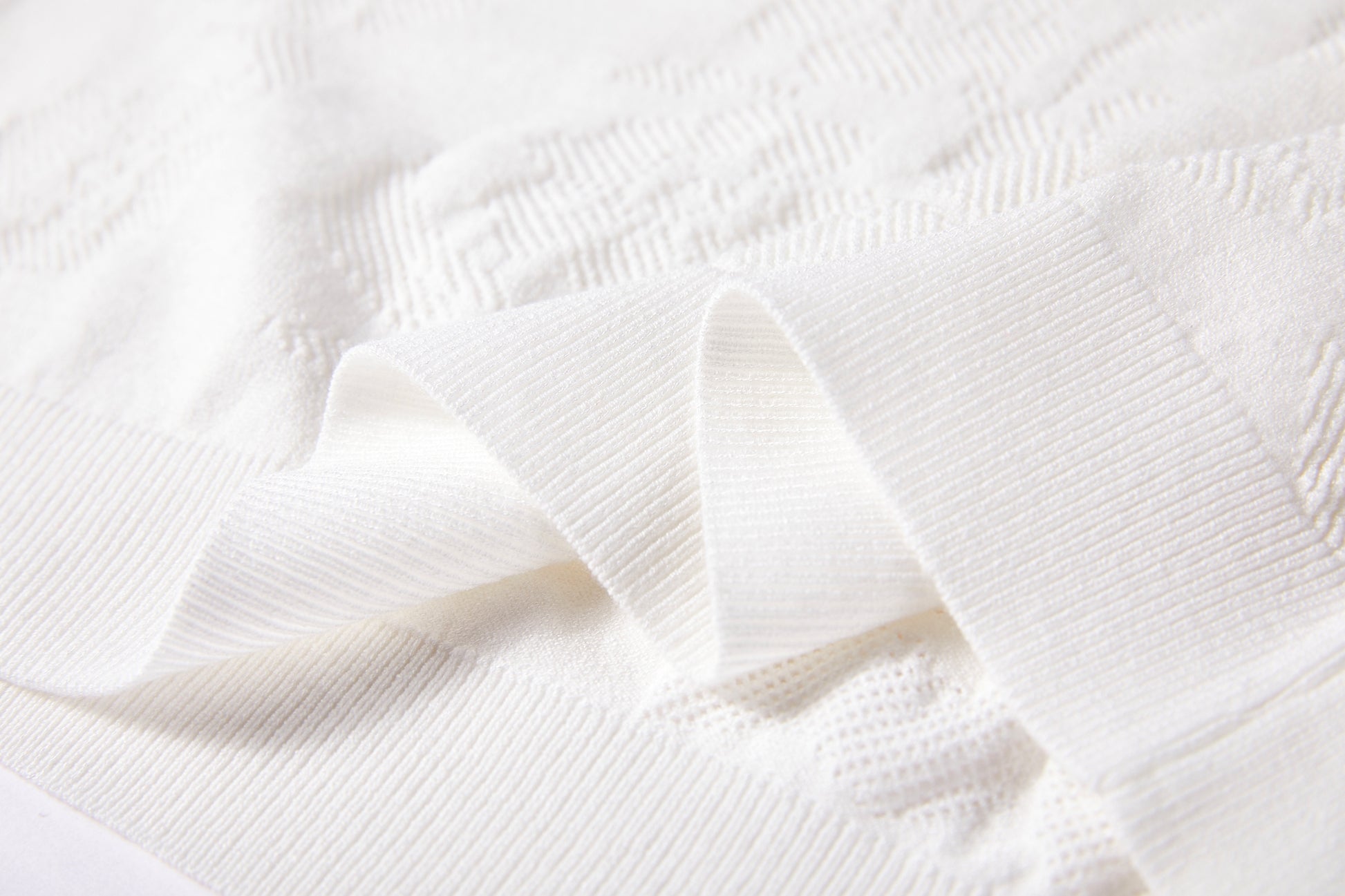 This elegant white sweater features a subtle woven floral pattern that adds a refined, soft look. The light texture creates depth without being too bold. A versatile piece that pairs beautifully with both casual and dressed-up outfits.