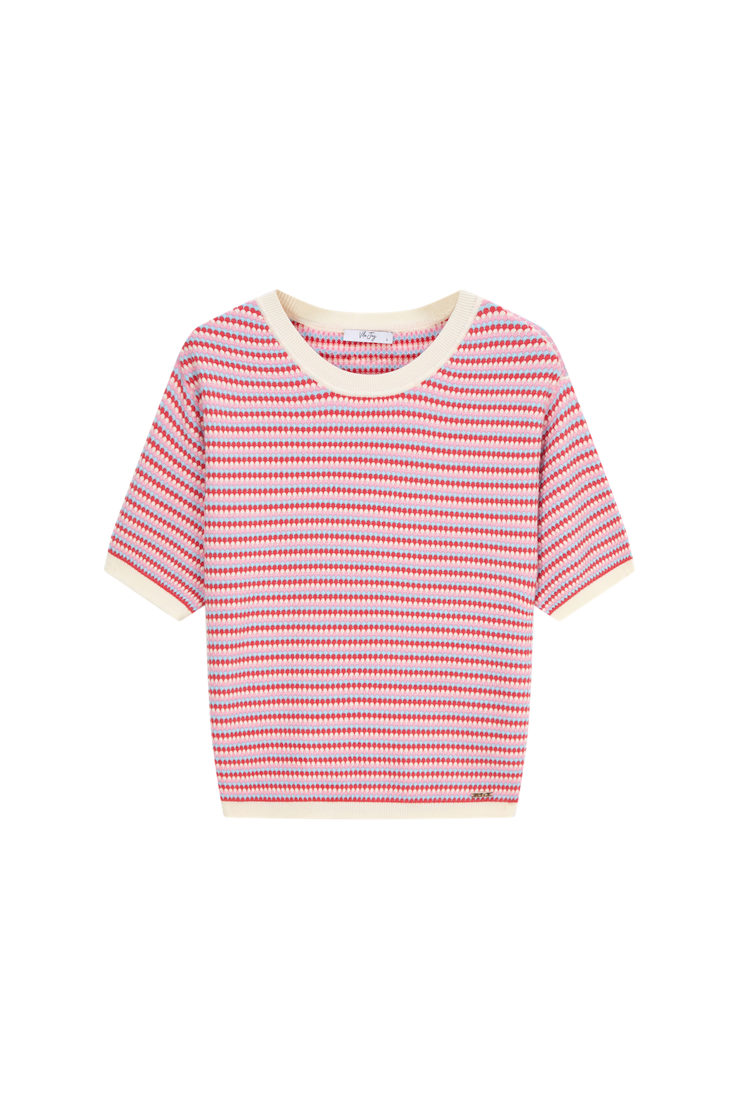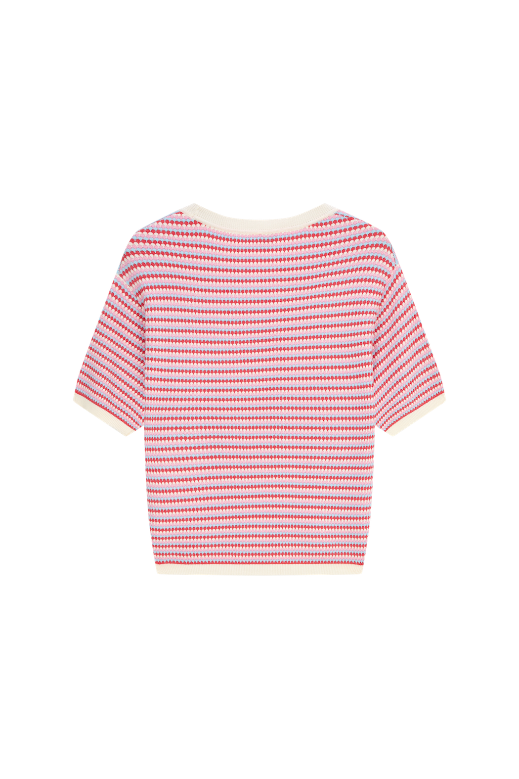 A cheerful top that instantly brightens up any outfit! The playful pattern in red, pink, and purple creates a fresh and vibrant look. The soft contrasting trims add a subtle finishing touch. Ideal for a sunny day, and just as stylish paired with a blazer or a denim skirt for a casual-chic vibe.