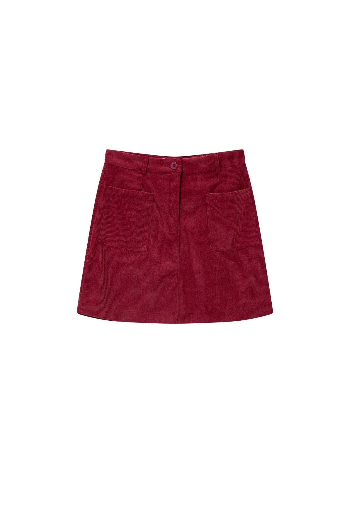 This contemporary women’s skirt features a fresh A-line fit that creates a playful and flattering silhouette. The two large front pockets add a modern, casual touch, while the high waist keeps the design nicely balanced. With belt loops and a classic button-zip closure, the skirt is both practical and stylish. Thanks to its clean, minimalist look, it pairs easily with sweaters, blouses, or a simple top. A versatile piece that instantly adds a fashionable and slightly bold touch to any outfit.